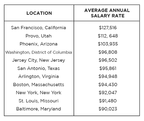 For one, the area’s cost of living is included in the calculation. Another reason is the level of demand for the developer’s skillset in the location. Nevertheless, the list below contains the diverse rates of highest-paying locations for .NET developers.
