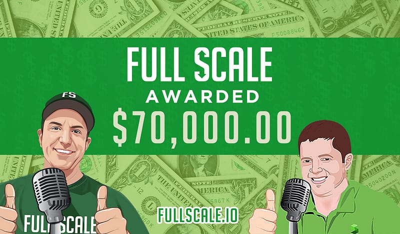 Text reads "FULL SCALE" with arrows pointing up and down inside the letters U and C.
